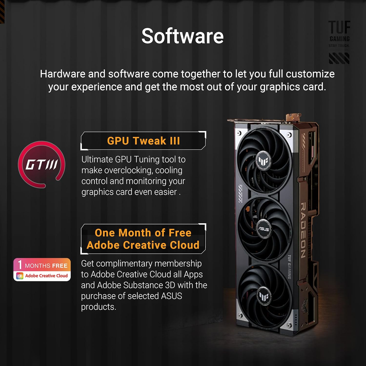 ASUS TUF Gaming Radeon RX 9070 XT OC Edition 16GB GDDR6 Grafikkarte (AMD Radeon Radeon RX9070XT, PCIe 5.0, 1x HDMI 2.1b, 3X DisplayPort 2.1a, 3.125-Slot-Design, TUF-RX9070XT-O16G-GAMING)