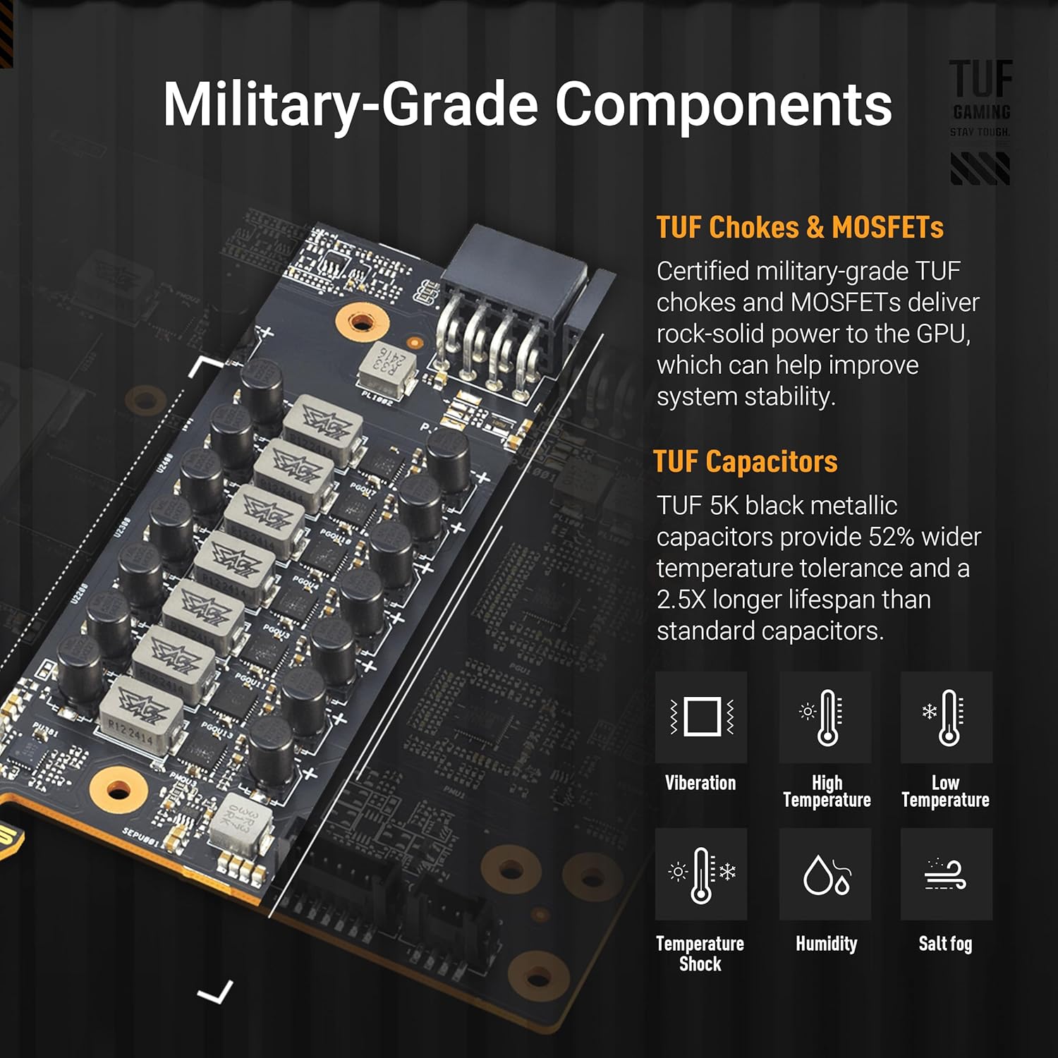 TUF-Drosseln, Kondesatoren & MOSFETs Komponenten in Militärqualität Zertifizierte TUF-Drosseln und MOSFETs in Militärqualität liefern der GPU eine felsenfeste Leistung, was die Systemstabilität verbessern kann. Die schwarzen TUF 5K-Metallic-Kondensatoren bieten eine 52% höhere Temperaturtoleranz und eine 2,5 mal längere Lebensdauer als Standardkondensatoren. Previous page Phase-Change Thermal Pad Ein Phase-Change-GPU-Wärmeleitpad, füllt die Lücken zwischen der GPU und dem Kühlkörper effektiv aus PCB-Schutzbeschichtung Die Beschichtung umhüllt die Platine und schützt sie vor Kurzschlüssen durch Feuchtigkeit und Staub Lüfter mit Doppelkugellagern Doppelkugellager bieten eine lange Lebensdauer von bis zu 80.000 Stunden GPU Tweak III Optimiere und überwache mit GPU Tweak III die Hardware über eine intuitive Benutzeroberfläche Verwirkliche deine Träume mit KI Erstelle und verwalte Bilder mit der KI-gestützten App MuseTree Next page 1 Phase-Change Thermal Pad 2 PCB-Schutzbeschichtung 3 Doppelkugellager 4 GPU Tweak III 5 MuseTree (function(f) {var _np=(window.P._namespace("PremiumAplusModule"));if(_np.guardFatal){_np.guardFatal(f)(_np);}else{f(_np);}}(function(P) { P.when('premium-module-12-nav-carousel').execute(function(init){ init(); }); }));