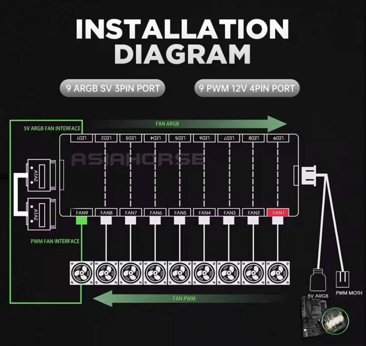Hub Schwarz AE RGB Steuerung Controller für PC Modding Zubehör ASUS MSI SYNC