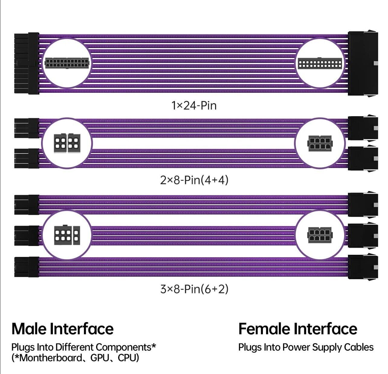 PC Kabel Lila 6er Set Double CPU Modding Kabel ATX IDE Gaming-PC ASUS SYNC