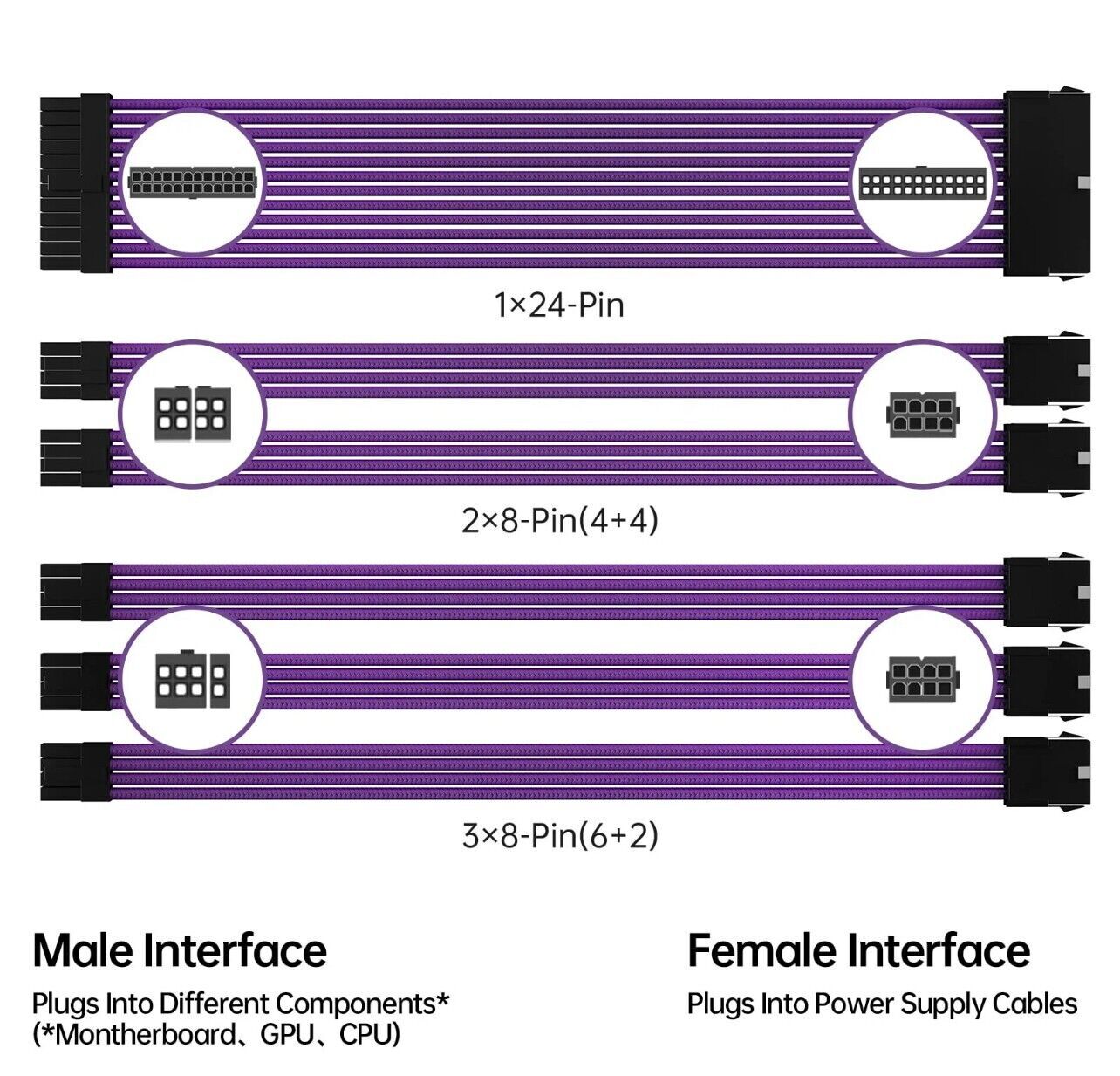 PC Kabel Set Lila 6er Modding Kabel mit ATX IDE Gaming PC ASUS MSI AORUS ARGB