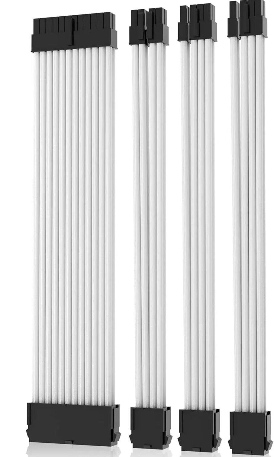 PC Kabel Set Weiß 4er Modding Kabel mit Schwarze Steckern ATX IDE Gaming PC ARGB
