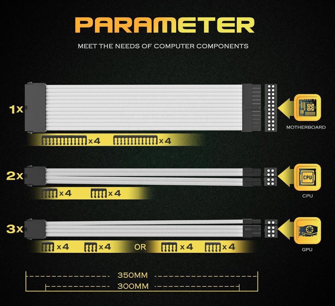 PC Kabel Weiß 6er Set Double CPU Modding Kabel ATX IDE Gaming PC ASUS SYNC